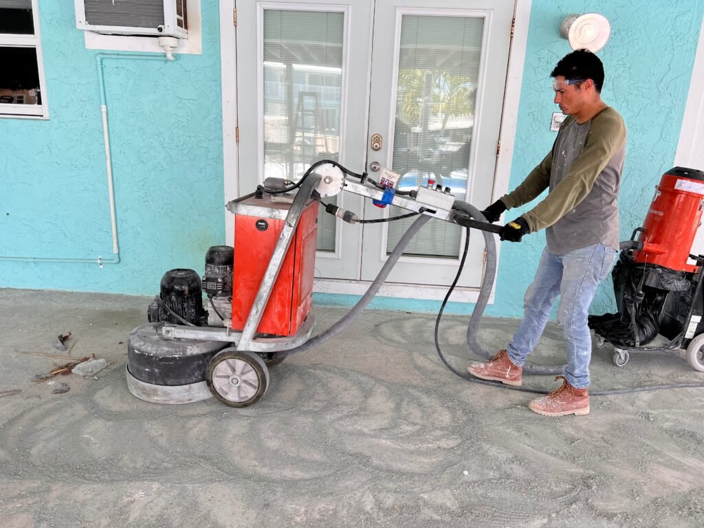 Paint removal , Concrete sealers , Urethane Cement, Epoxy Flakes, stains concrete, Diamonds grinding ,quartz System ,terrazzo , epoxy terrazzo , vapor barrier , old epoxy removal , Polish concrete, scar fire , shot blasting , crack repair , control joint, stairs coating , solid color epoxy, tile removal , concrete restoration , concrete slope, self level concrete, underlying concrete level.